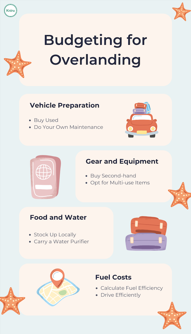 4. How can I manage food and water costs during overlanding? Plan to cook your own meals using locally sourced ingredients to save money. Carry a water purifier to avoid the cost and environmental impact of buying bottled water.